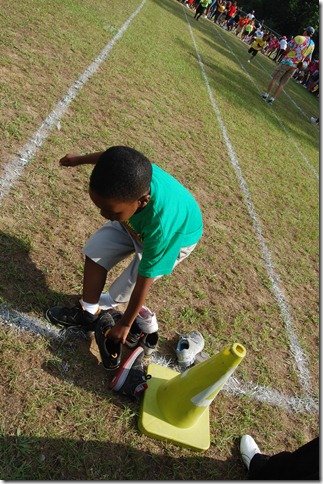 Mrs. Abraham’s Kindergarten Class before field day and fun day started. Getting ready to run the relay races.